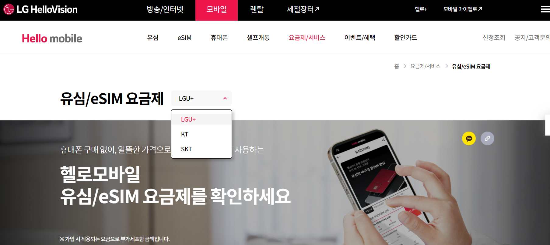 저는 lgu+요금 쓰고 있어서 인터넷에서 알뜰요금 lgu+로 검색 치면 가장 먼저 검색되는 헬로비전에서 저는 개통을 했습니다.