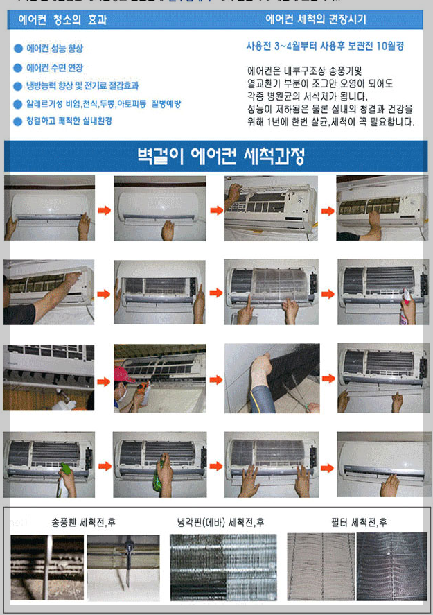 벽걸이 에어컨 세척과정은 아래 그림에서 확인하시기 바랍니다.