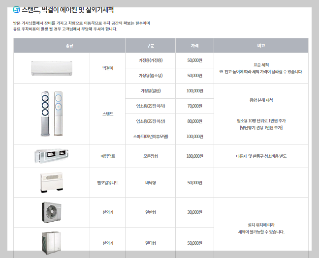 세척 서비스 완료 후 1년간 제품 고장에 대해 무상 보증까지 제공하니 안심하고 맡길 수 있는데 비용은 사설 업체보다 비싼 편입니다.