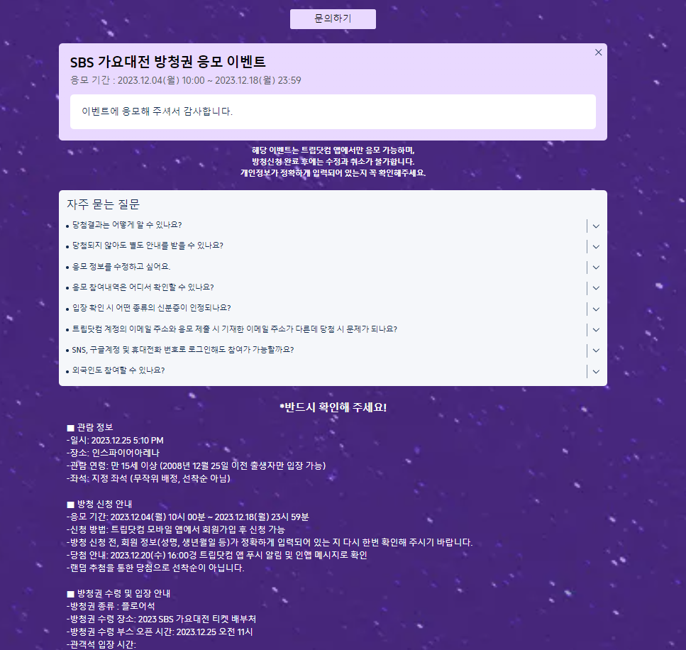 SBS가요대전 방청 티켓팅은 오직 트립닷컴 앱에서만 가능합니다.
