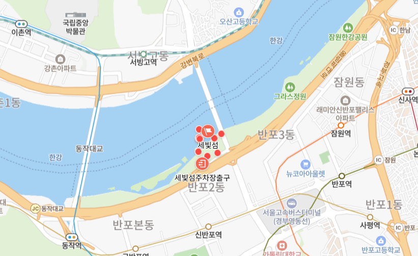 한강 한가운데 위치해 있어서 불꽃놀이를 한눈에 담을 수 있는 최고의 장소중 하나입니다